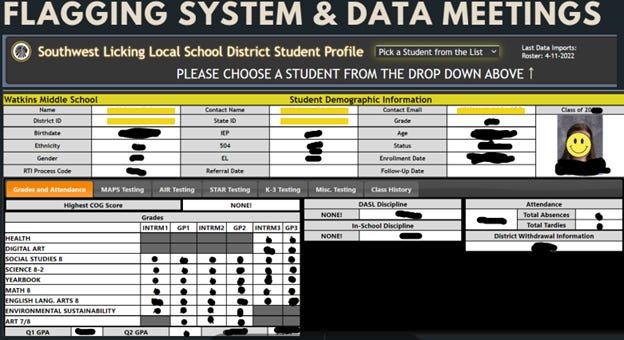 The above link liberally uses district imagery and credits the district so there is no question where this information is from. I was entertaining a claim that it may have come from a permissive parent, but it appears that at least some of this information was pulled directly from the district information systems.