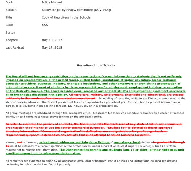 He argued that if we were really talking about equal access and we advise students and parents that they can opt out of having info disclosed it should be for all or none. This is all I will say on this because, as you see above, he approved the policy. This will be an important argument later, but it is important here because this delay pushed approval of this policy back to February 2023 instead of January 2023
