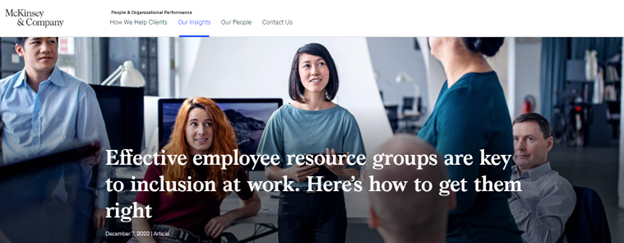 “As companies have refined their diversity, equity, and inclusion (DEI) strategies to better meet the needs of workers and other stakeholders, many have begun reexamining the roles of their employee resource groups (ERGs), which are internal communities of workers with shared identities and interests.” - McKinsey & Company